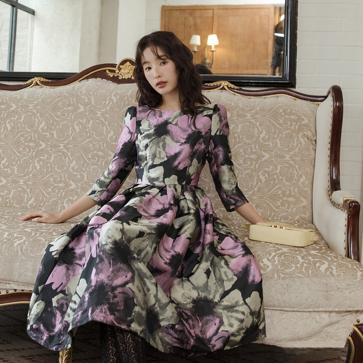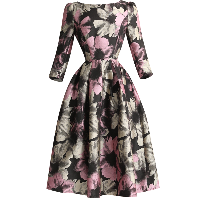 欧货连衣裙女中长款 乔万尼秋装 气质显瘦印花七分袖 修身 商场新款