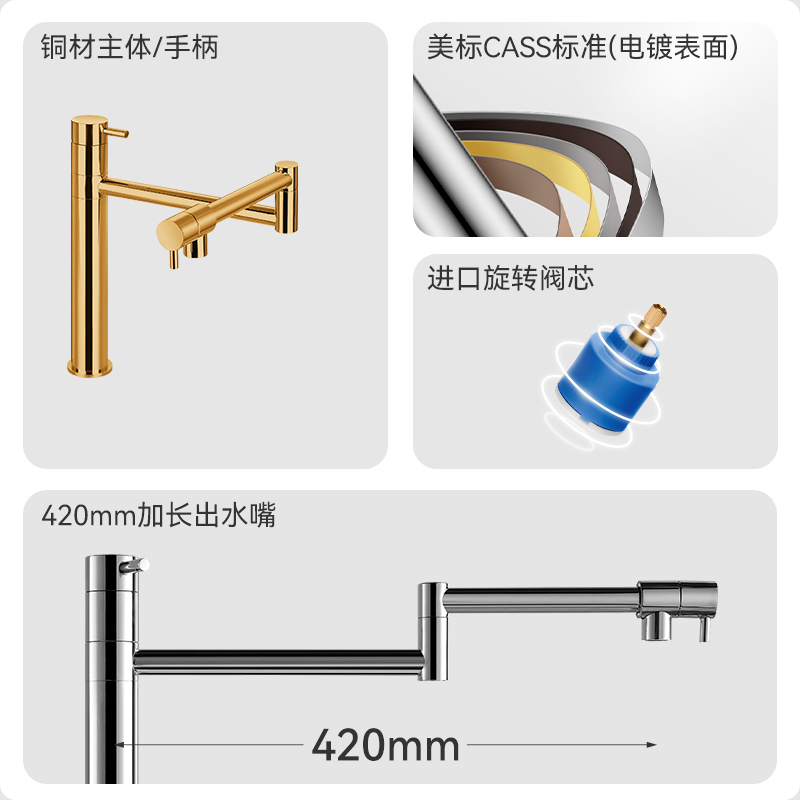 精铜厨房水龙头冷热家用水槽洗菜洗手盆洗碗池旋转不锈钢单冷防溅