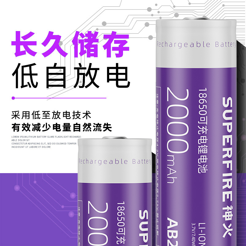 神火18650锂电池 充电3.7v强光手电筒大容量动力小风扇电蚊拍头灯