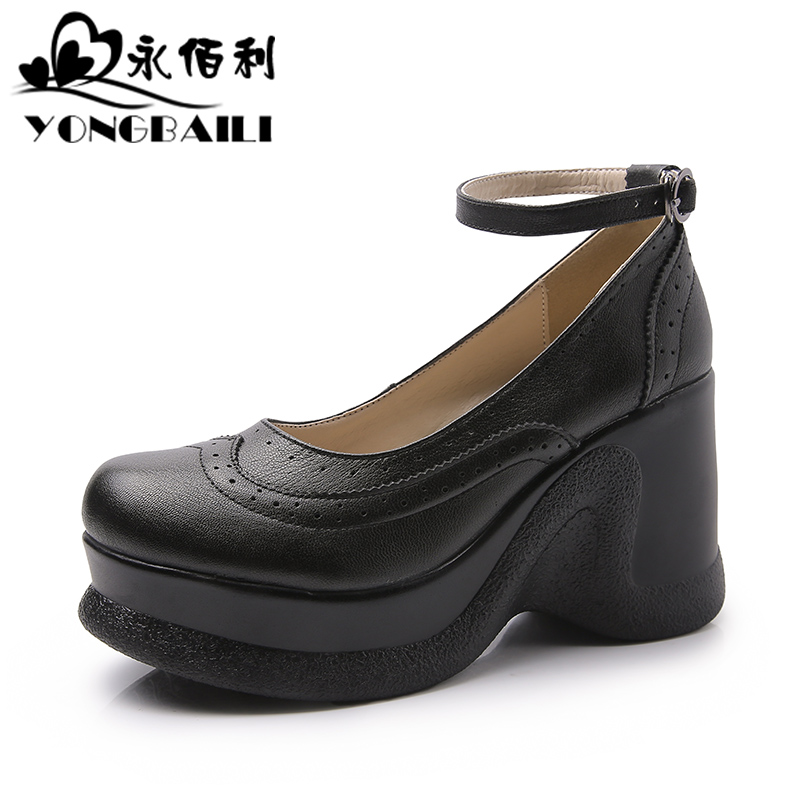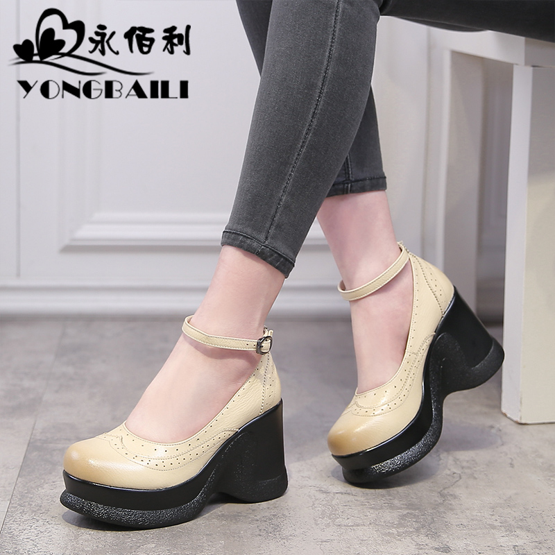 皮鞋 2025春季 真皮坡跟圆头休闲女鞋 原创浅口厚底超高跟松糕鞋 新款