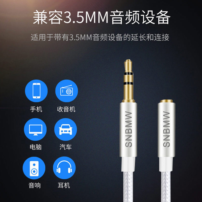 SNBMW耳机延长线音频加长线转接头手机电脑音响加长连接线aux插头3.5mm公对母1米2米3米通用带麦克风线控