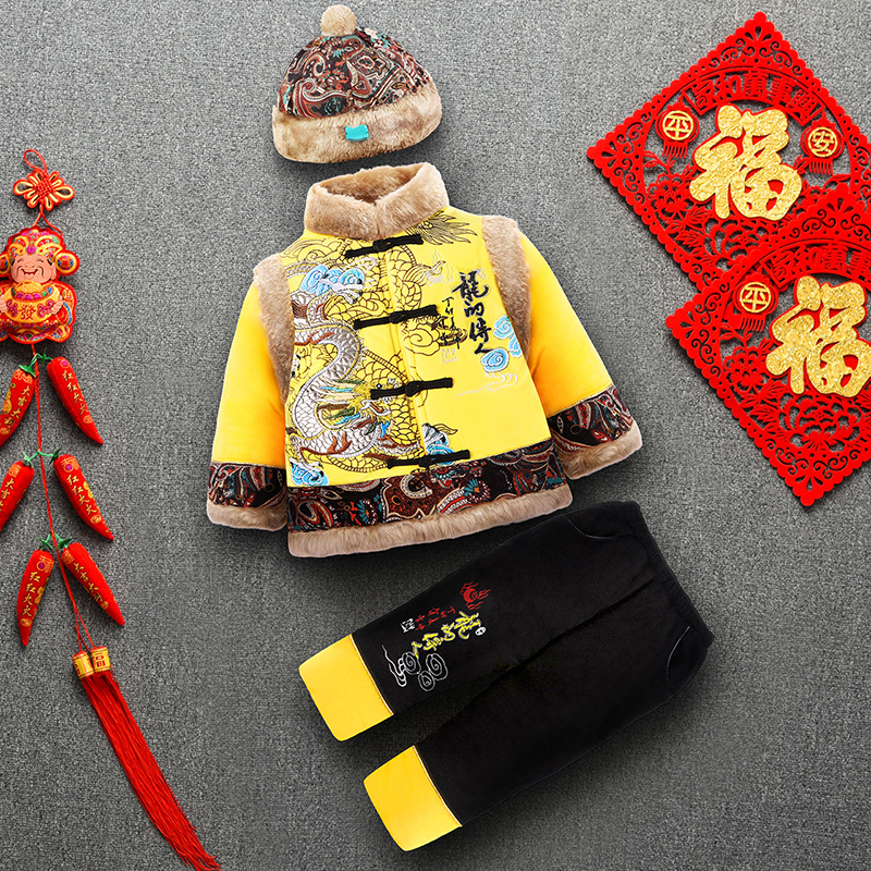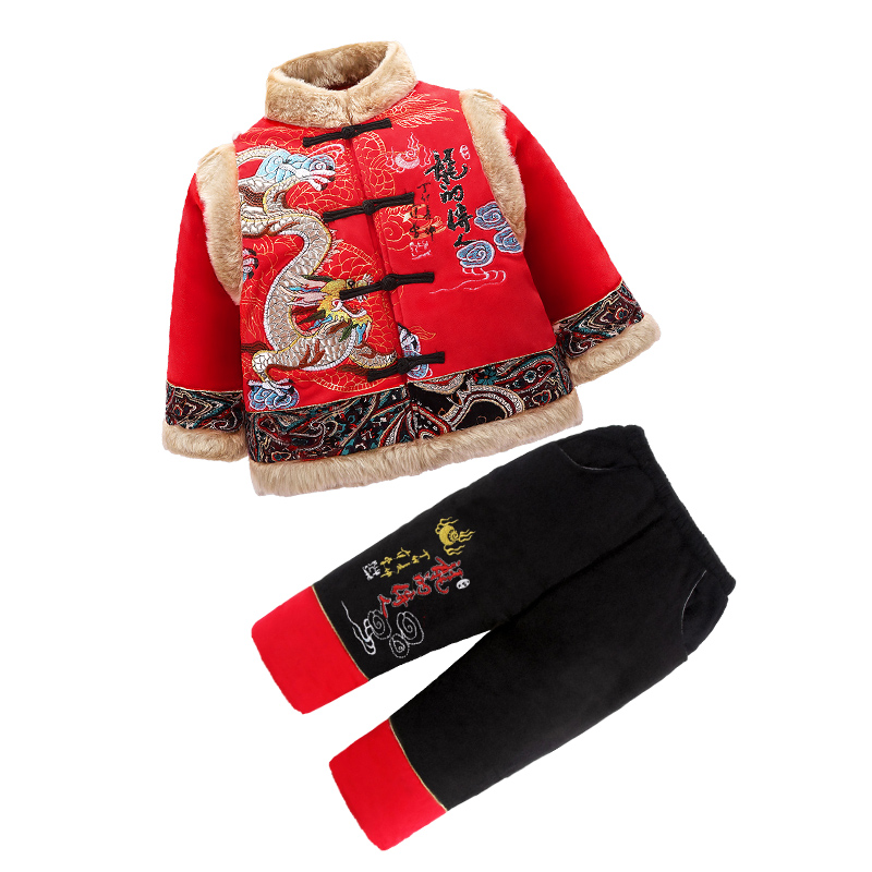 冬装 男童过年帅气衣服周岁男宝宝冬季 汉服加厚拜年服古风男孩唐装