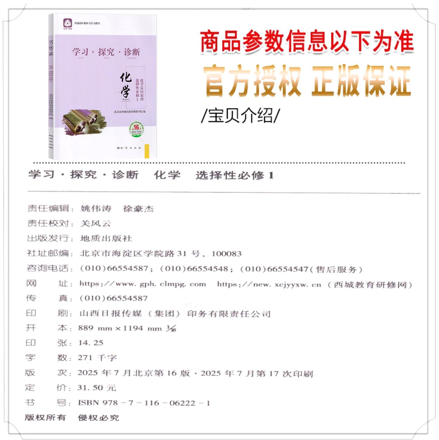 选择性必修1 化学 化学反应原理 第16版 2025秋北京西城 学探诊高中化学选修1西城区教育研修学院编十五版 学习探究诊断