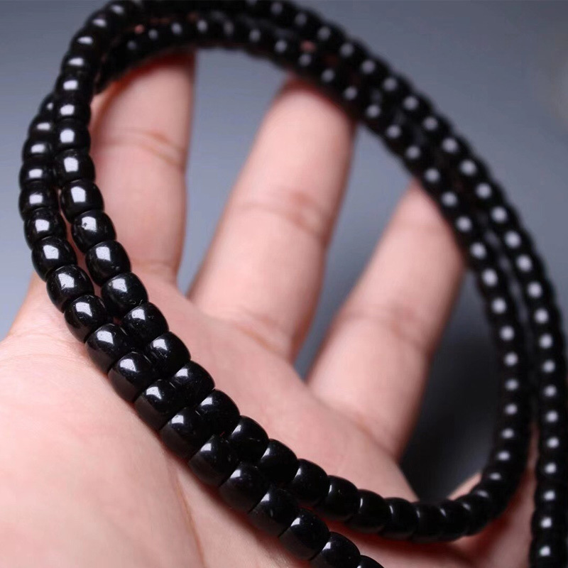 手工原色打磨黑金椰蒂高密老料文玩佛珠手串项链108颗直切圆桶珠