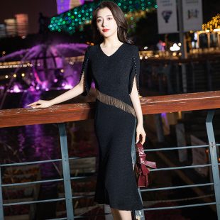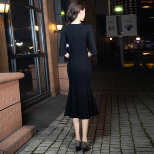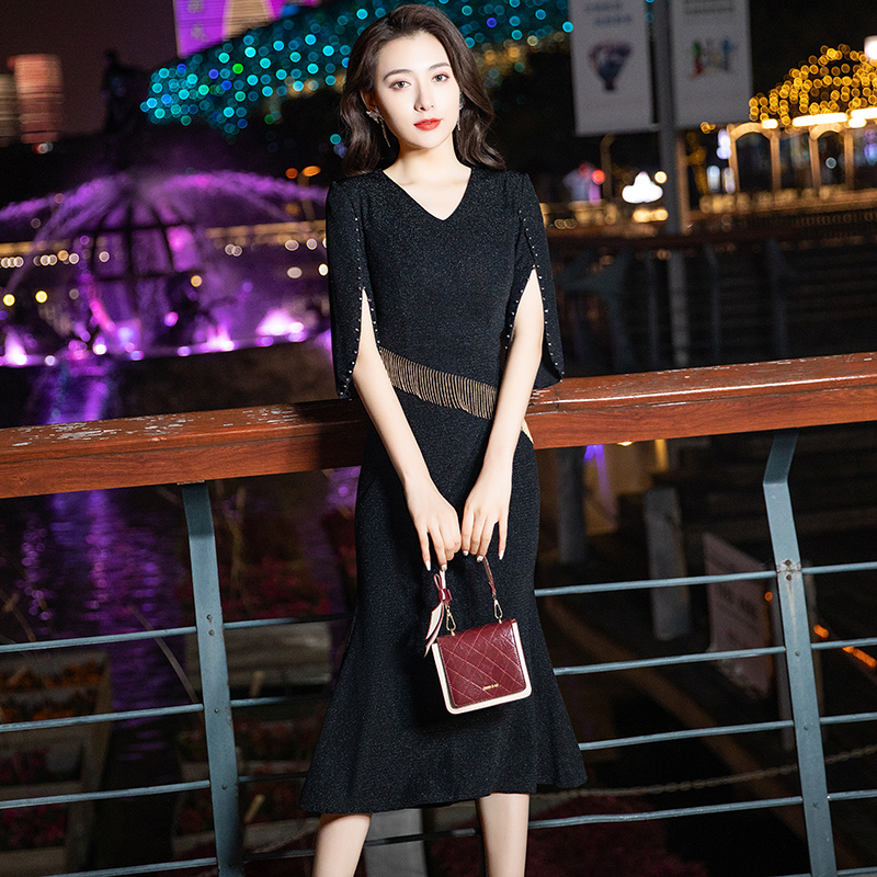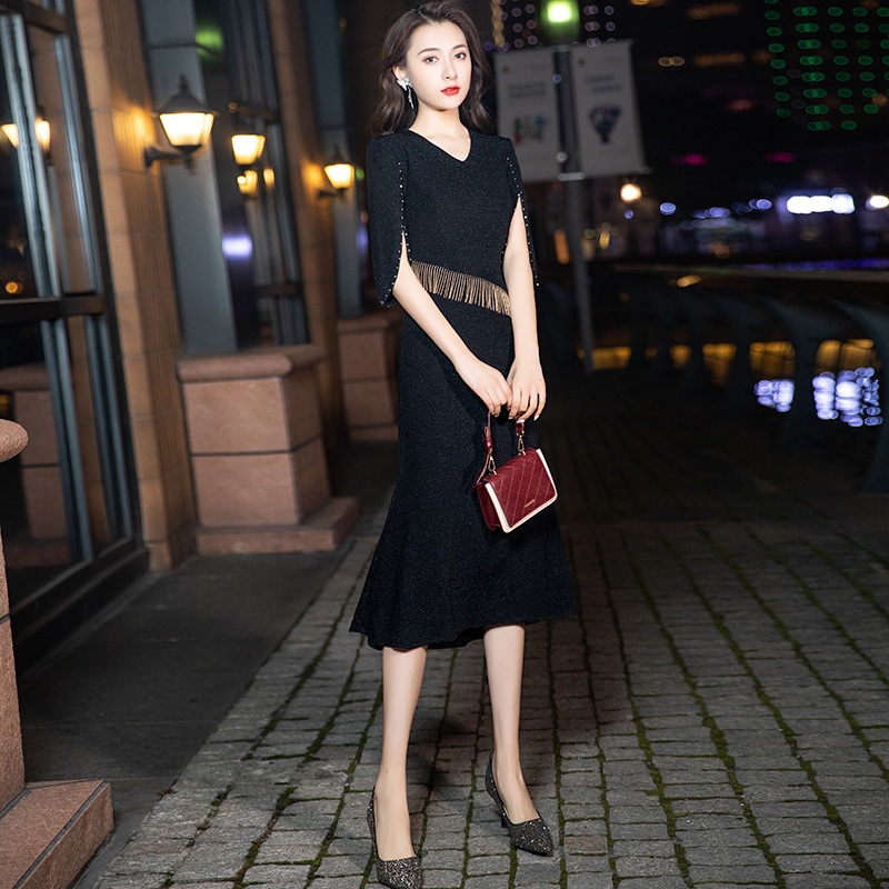 黑色晚礼服女2025新款 高端轻奢小众气质宴会高级感鱼尾聚会主持裙