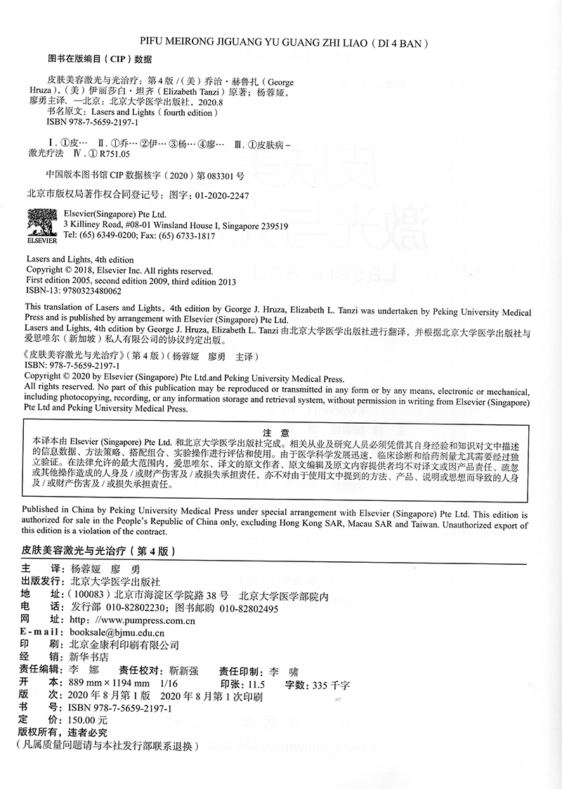 社9787565921971 杨蓉娅北京大学医学出版 现货皮肤美容激光与光治疗第4版 美容皮肤科学系列丛书