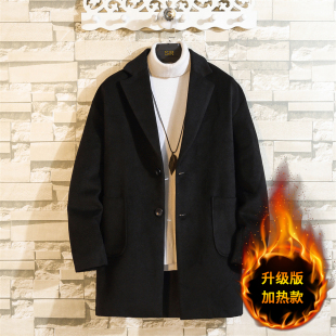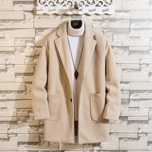 过膝无羊绒呢子风衣外套韩版 毛呢大衣男中长款 宽松落肩 新款 秋冬季