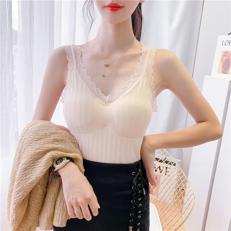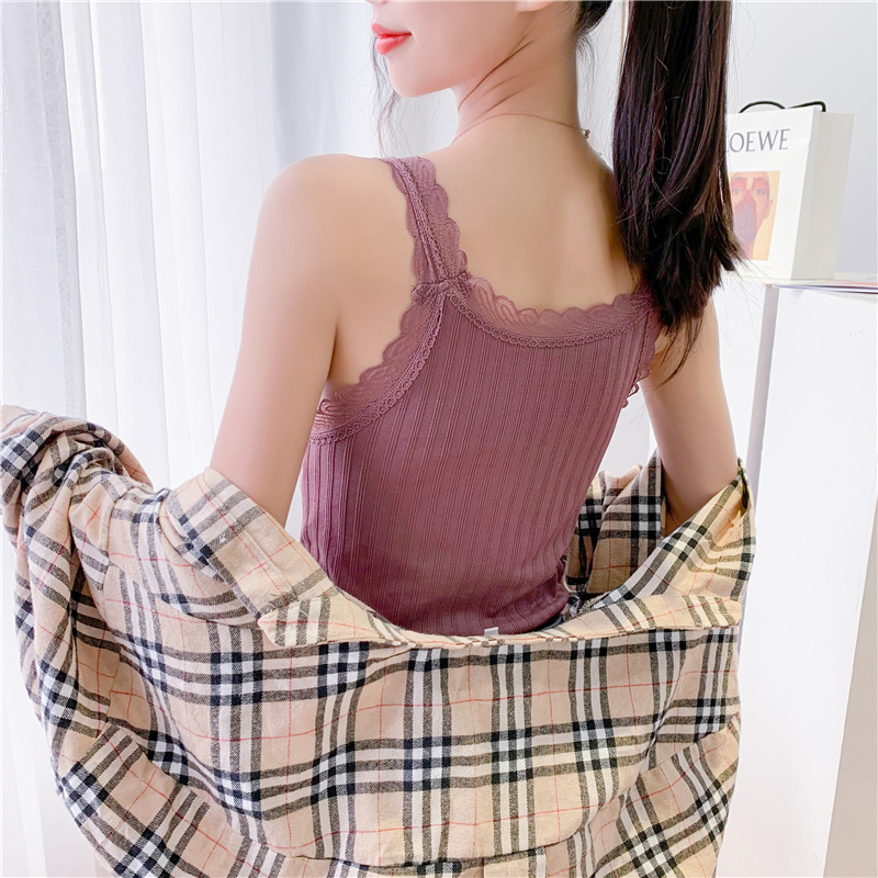 上衣 蕾丝保暖内搭外穿紧身打底衫 秋冬加绒吊带背心女2020新款 韩版