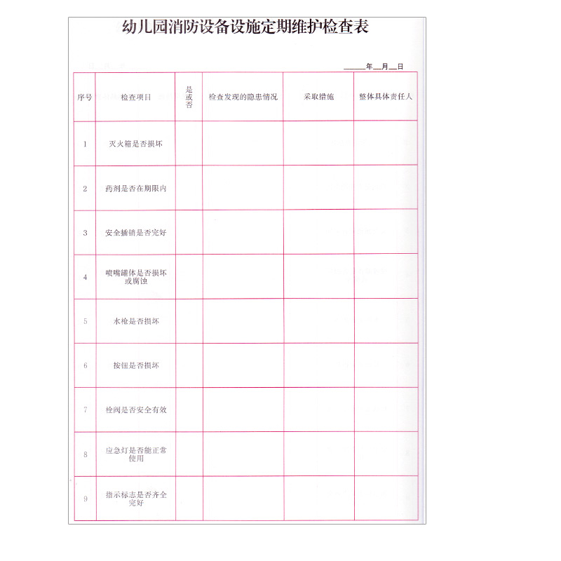 幼儿园安保综合治理登记本安保综合治理记录校进出人员登记消防设施维护安全演练安全检查制度安保防护器械登记幼师安全工作月记录