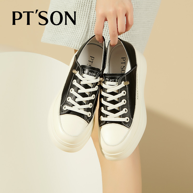 一脚蹬女鞋 女真皮增高板鞋 小白鞋 百田森松糕厚底鞋