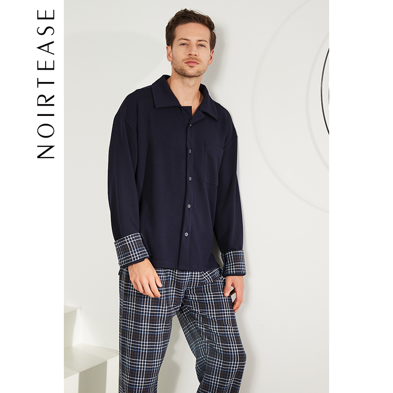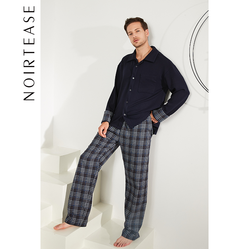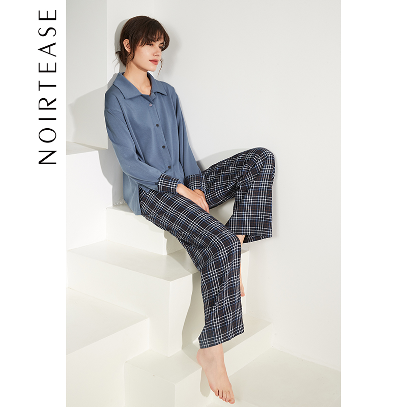 家居服套装 NoirTease奈黎诗可外穿空气棉质格子开衫 男女情侣长袖