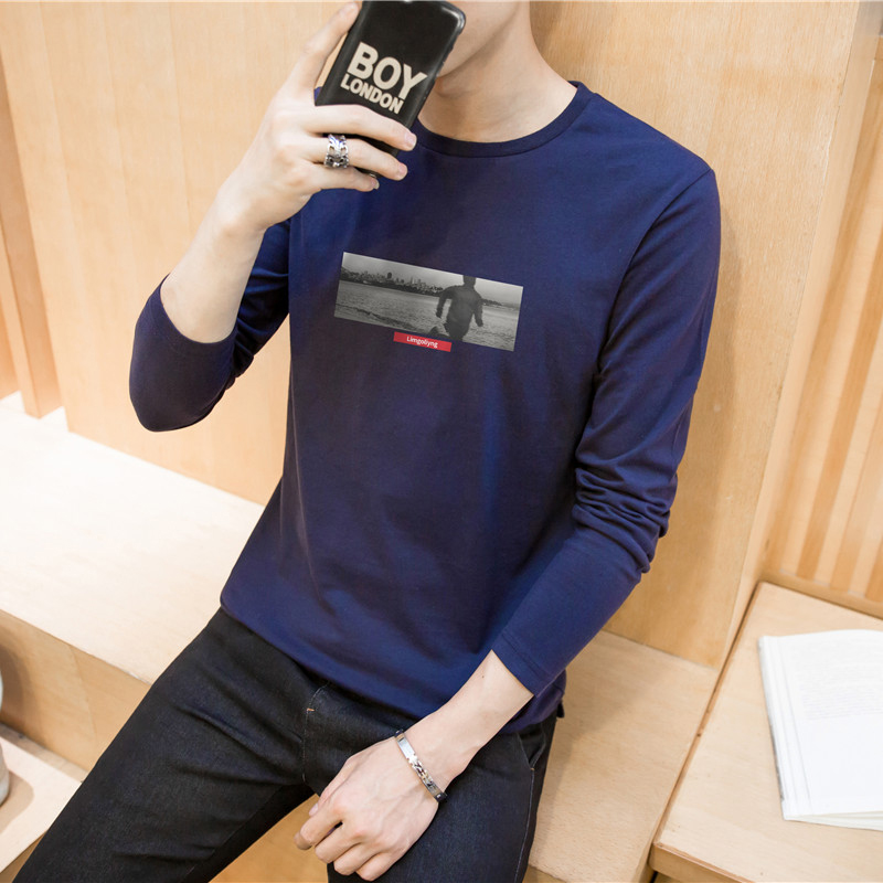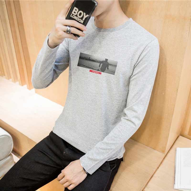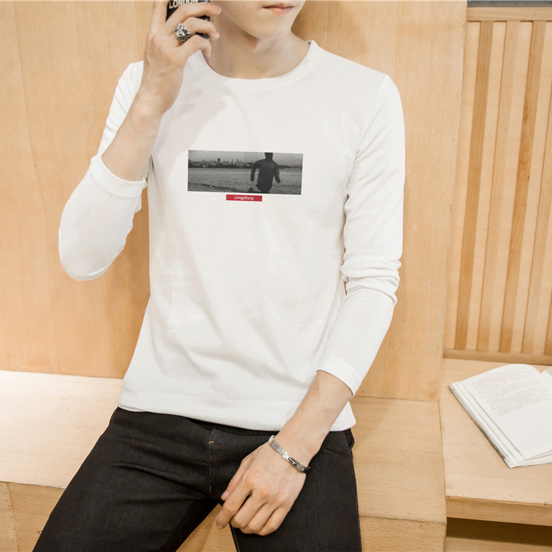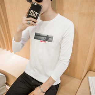 男士 打底衫 长袖 男装 印花秋衣潮流上衣服 T恤圆领潮牌纯棉修身 秋季