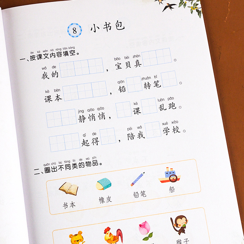 语文专项训练课文内容填空 一年级上册彩图注音数一数连一连看图写汉字同步小学生课堂汉语拼音练习本习题册思维训练照样子写一写