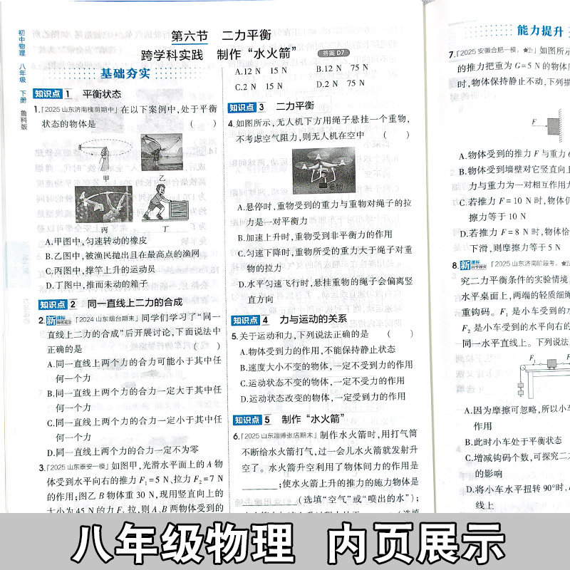 53初中教材同步五年中考三年模拟物理八年级下册同步讲解练习 八年级下册鲁科版 2026春五四制鲁科版 曲一线5年中考3年模拟初中物理8