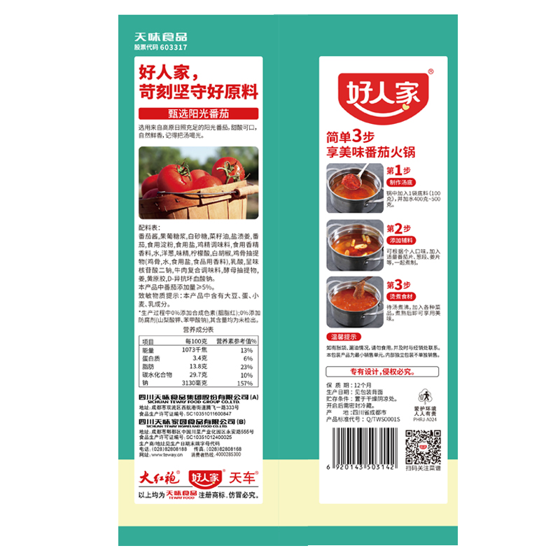 好人家浓汤番茄火锅底料200g家用酸汤番茄锅低酸甜味鱼茄汁面汤料