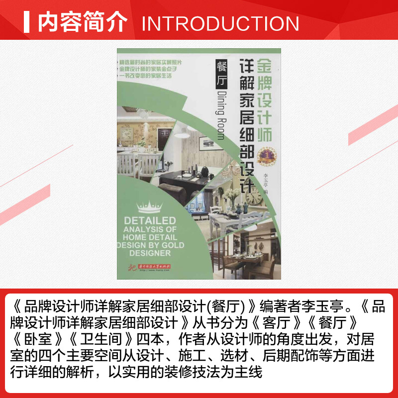 新 餐厅 建筑 金牌设计师详解家居细部设计 专业科技 华中科技大学出版 编 图书籍 李玉亭 社 著作 新华书店正版 水利