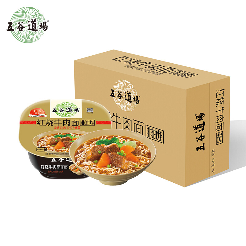 五谷道场方便面非油炸泡面番茄牛腩面12碗装 网红方便速食面 整箱