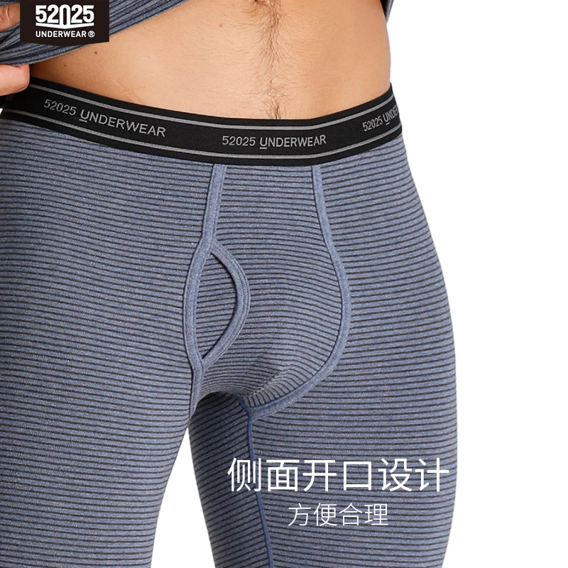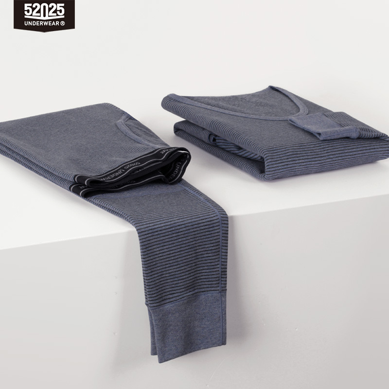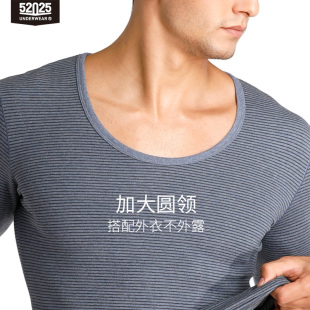 冬加厚加绒圆领条纹护膝秋衣秋裤 52025纯棉质男士 保暖内衣女套装