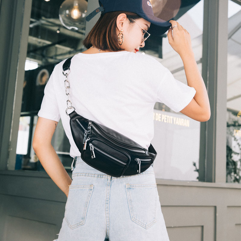 手机包休闲街头个性 时尚 小胸包 真皮斜挎腰包女潮ins韩版 明星同款