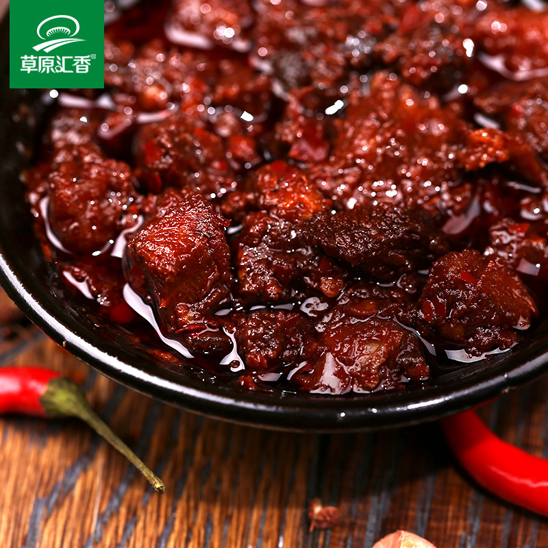 草原汇香香辣牛肉酱纯牛肉辣椒酱拌面酱下饭酱爆下饭下饭菜香辣酱