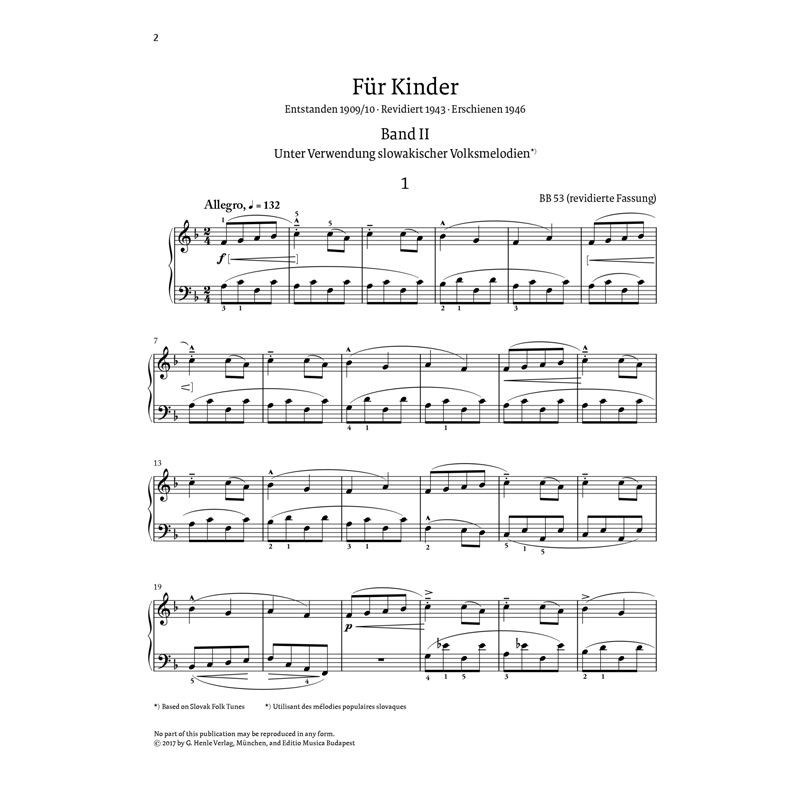 1946年修订版 HN1226 solo 1946 巴托克 献给孩子们卷二 Für Bartók Klavier 亨乐原版 Kinder für rev.