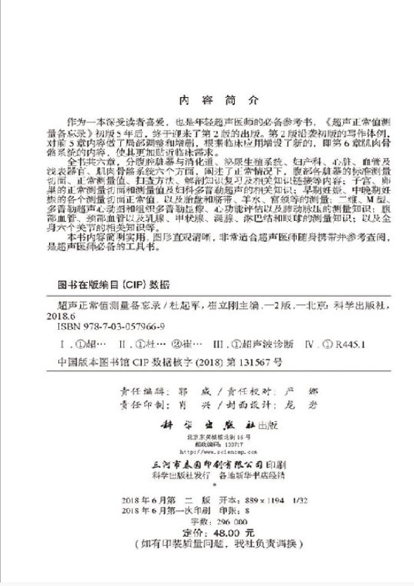 崔立刚 社 超声正常值测量备忘录 超声医师基本功培训丛书 诊断临床备忘录 二 现货 第2版 科学出版 共两册 杜起军 正版