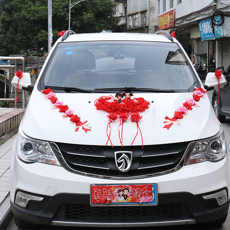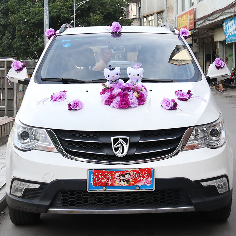 婚车装 结婚用品婚庆婚礼车头公仔娃娃主副婚车仿真花车头花 饰套装
