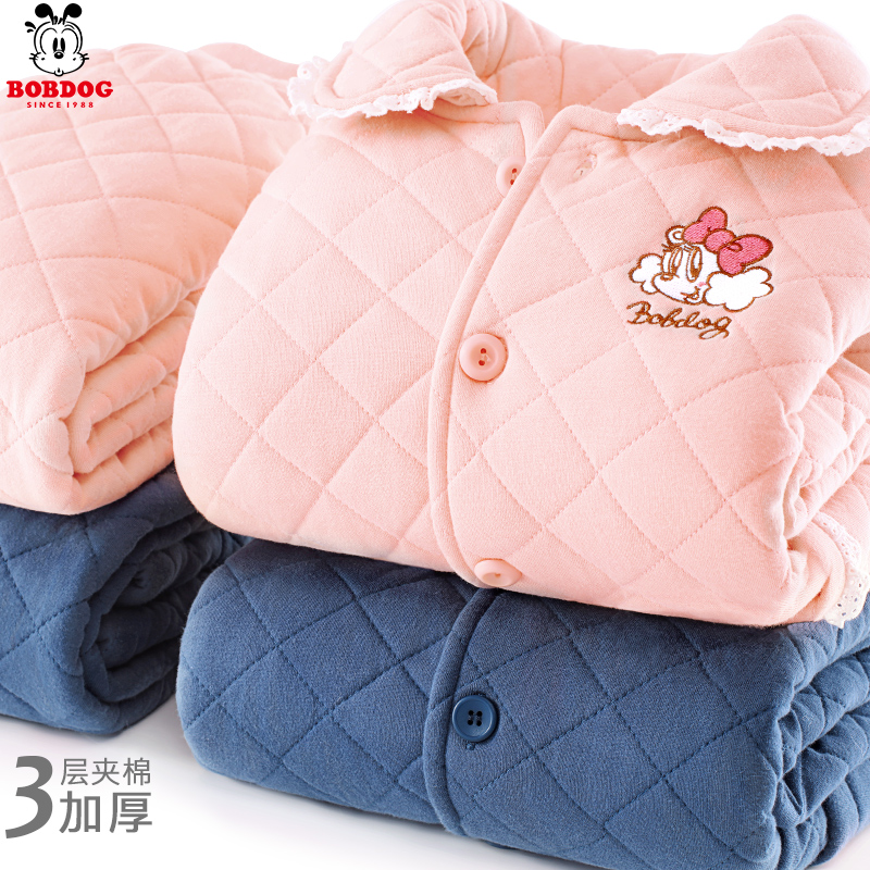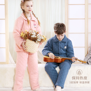 加大码 套装 家居服春秋 秋冬季 芬腾女士睡衣空气棉夹层纯棉加厚长袖