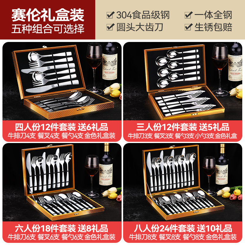304不锈钢西餐餐具刀叉全套刀叉勺三件套牛排盘子套装 家用316