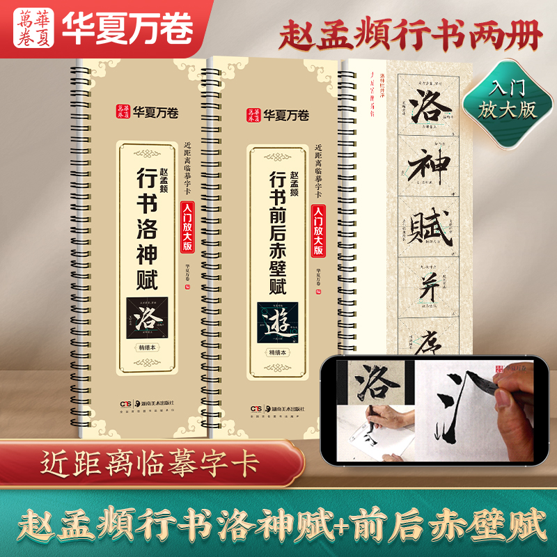 华夏万卷近距离临摹字帖临帖赵孟俯行书毛笔书法临帖 赵孟俯行书字帖赵孟頫行书前后赤壁赋米字格入门放大版 赵孟頫行书洛神赋