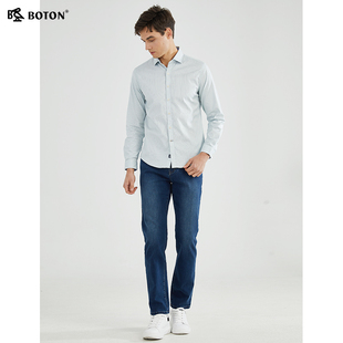 男士 波顿2025春秋季 纯棉修身 衬衫 休闲青年高端衬衣 浅蓝色条纹长袖