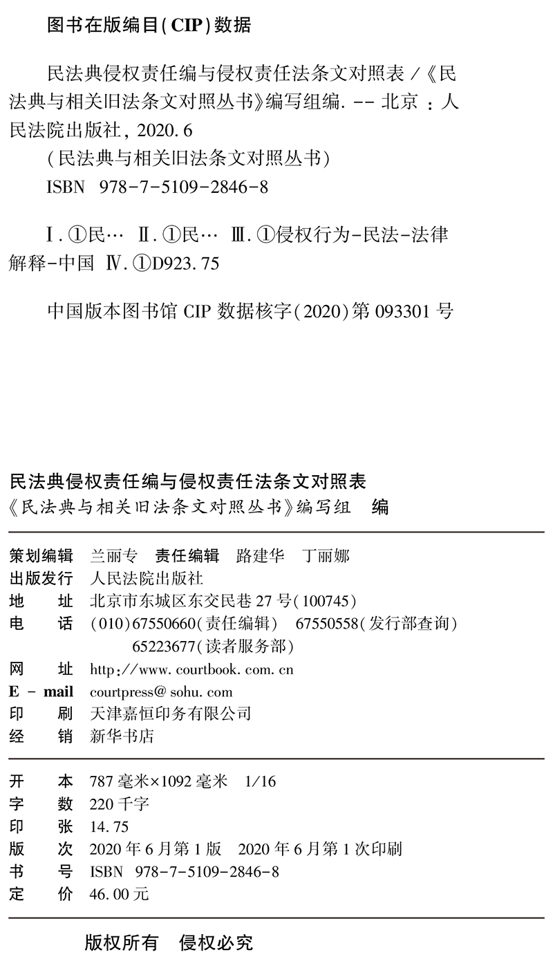 现货 人民法院出版 民法典侵权责任编与侵权责任法条文对照表 法条法律法规 社 中华人民共和国民法典解读民法典对照版 正版