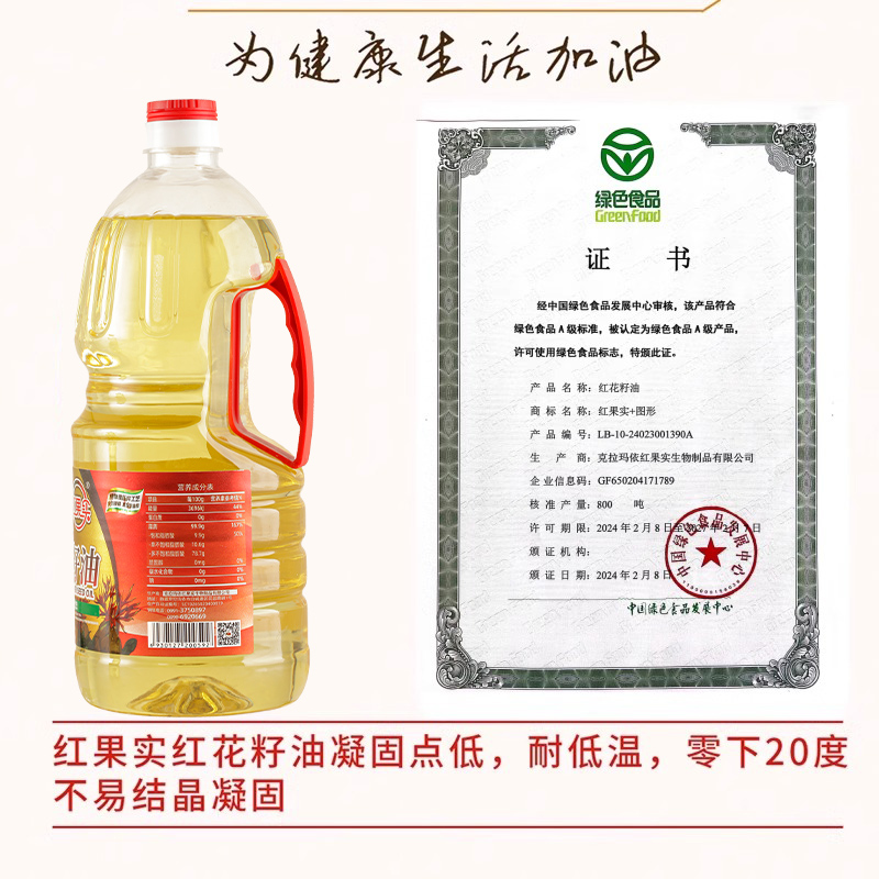 红花籽油新疆红果实红花籽油绿色食品1.5L物理压榨一级食用油