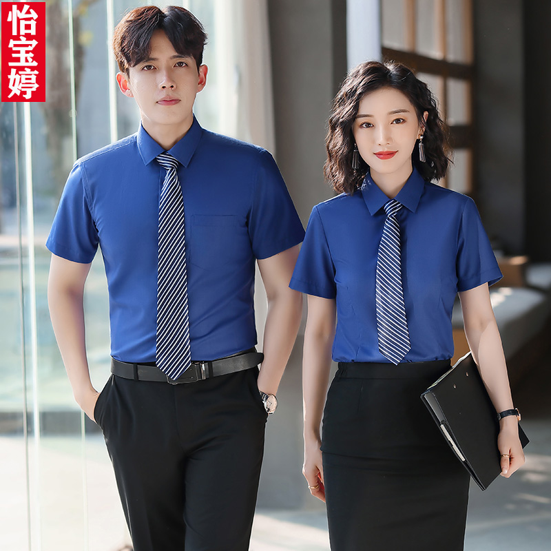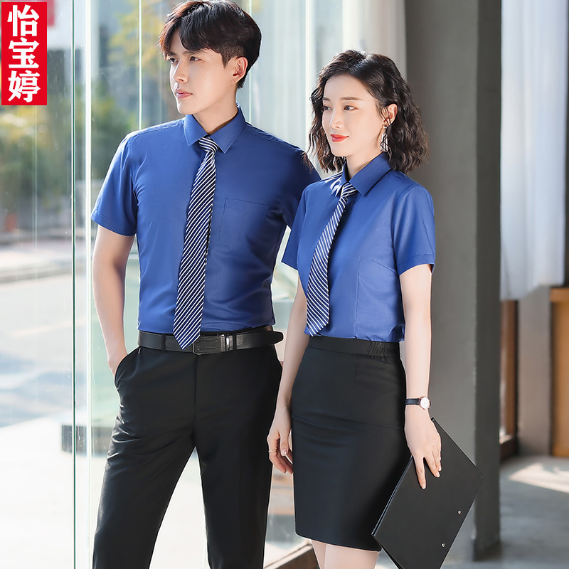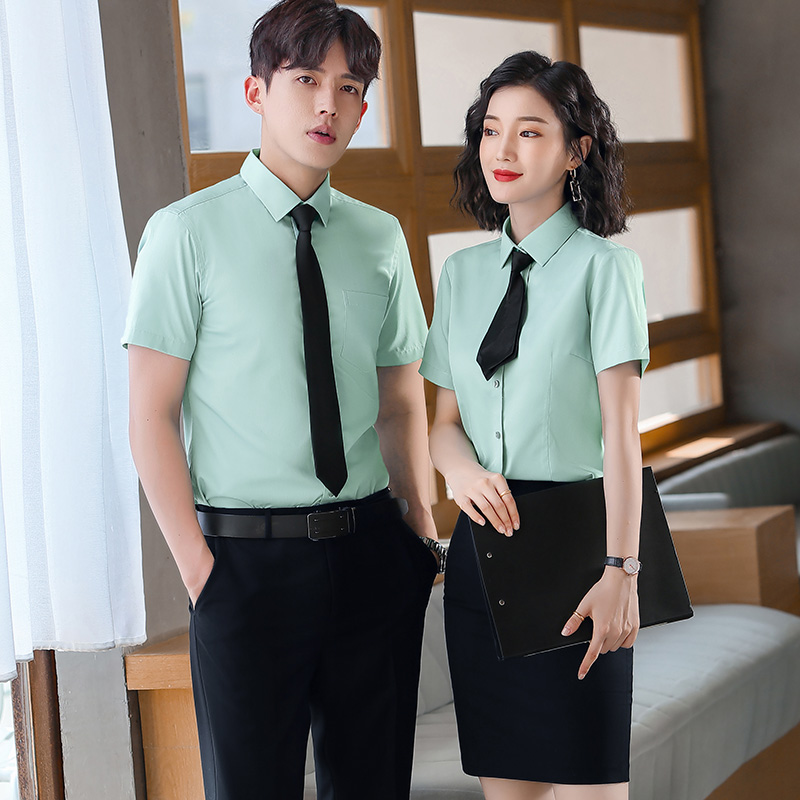 衬衫 装 套装 工装 饰公司工作服定制绣LOGO 房地产时尚 职业浅绿色短袖