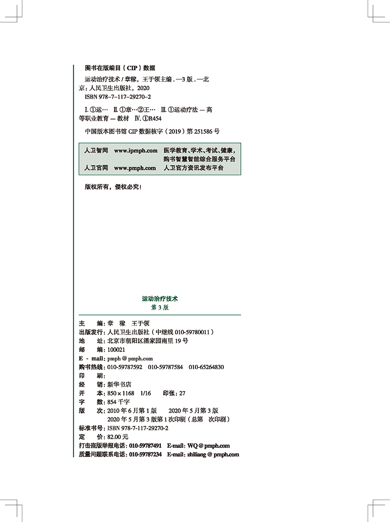 主编 社 供康复治疗专业用 人民卫生出版 2020年5月规划教材 9787117292702 于领 章稼 大学教材 第3版 运动治疗技术