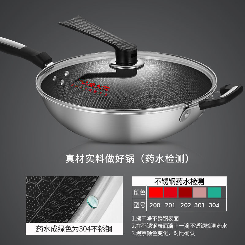 炊大皇304不锈钢炒锅不粘锅少油烟加厚家用蜂窝炒菜锅明火电磁炉