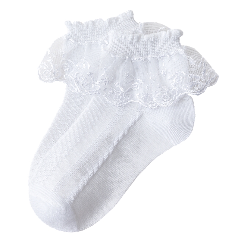 儿童花边袜春秋薄款 宝宝纯棉袜子 中筒蕾丝女童公主白色舞蹈袜夏季