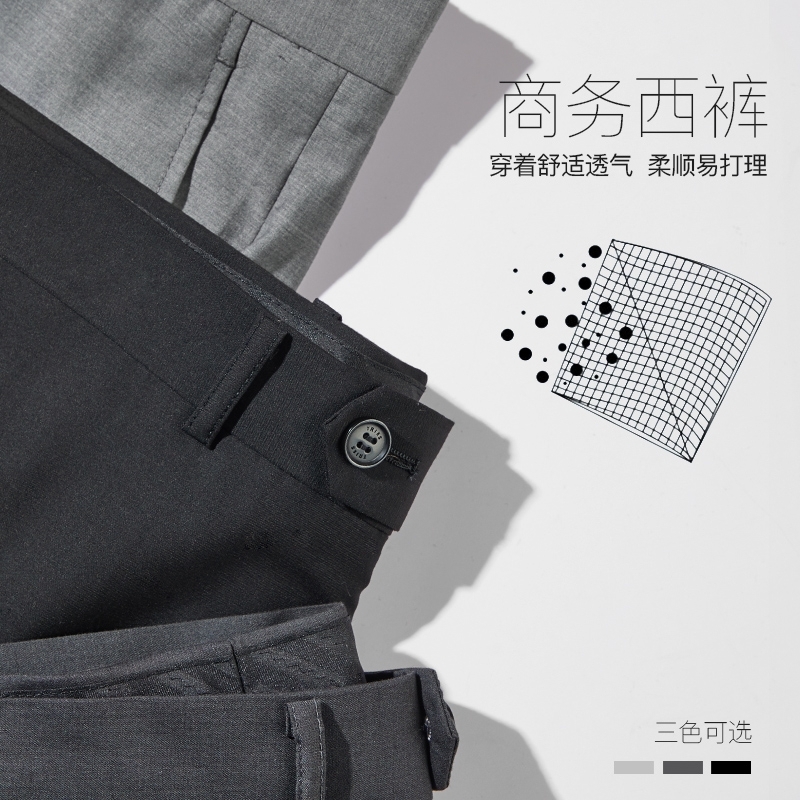青年西裤 修身 小脚免烫抗皱薄款 商务休闲裤 子 夏季 长裤 裤 男士 西装