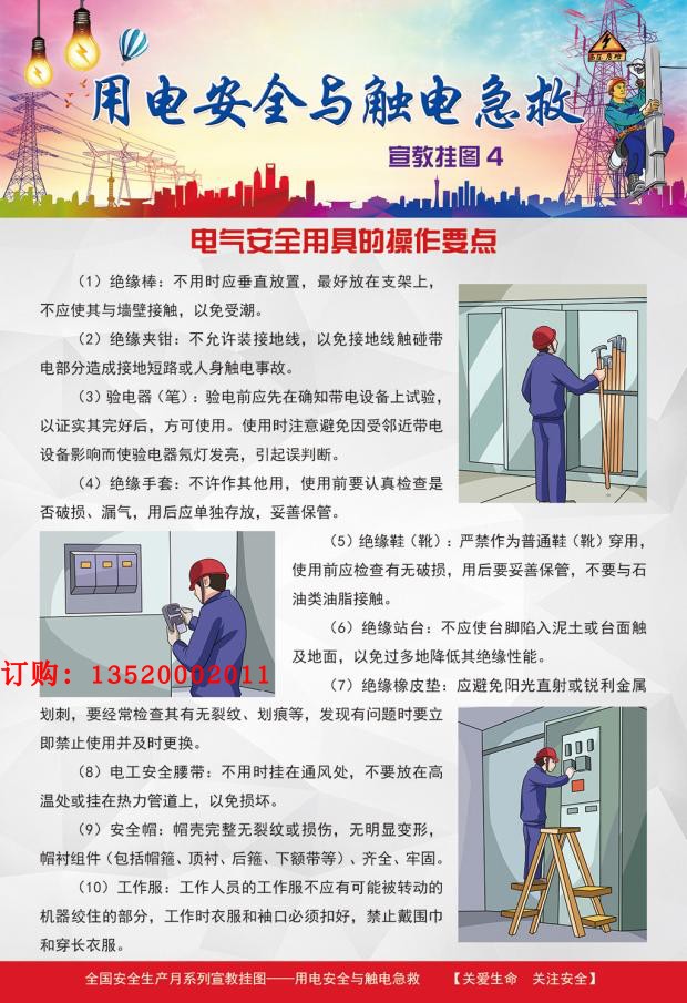 2025年安全生产月宣传海报招贴画消防隐患大排查宣教挂图 套 6张J 用电安全与触电急救宣教挂图6张 包发票