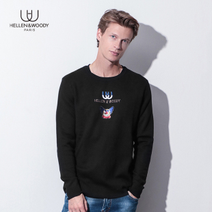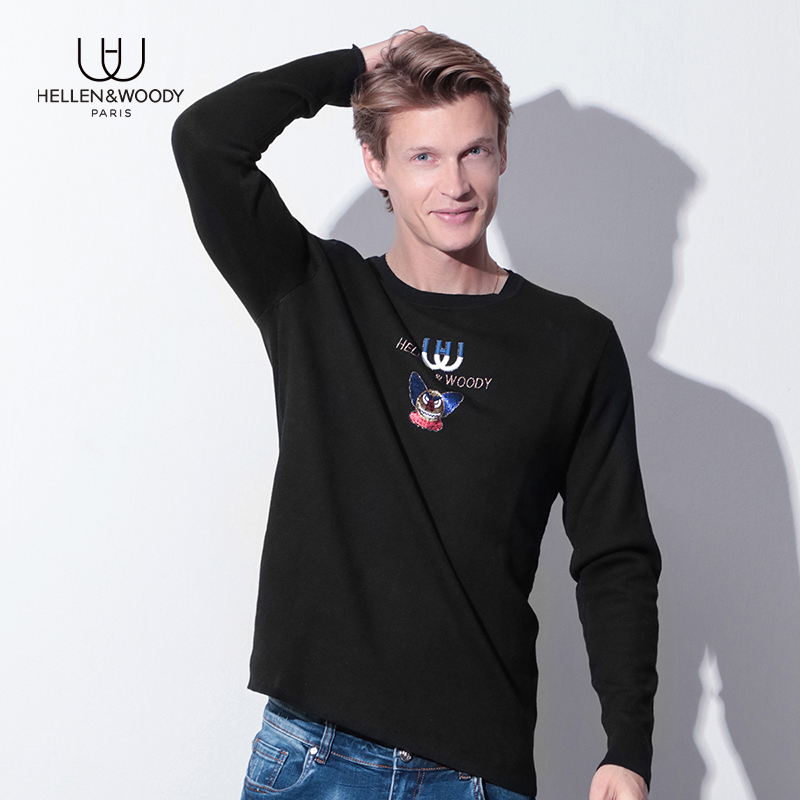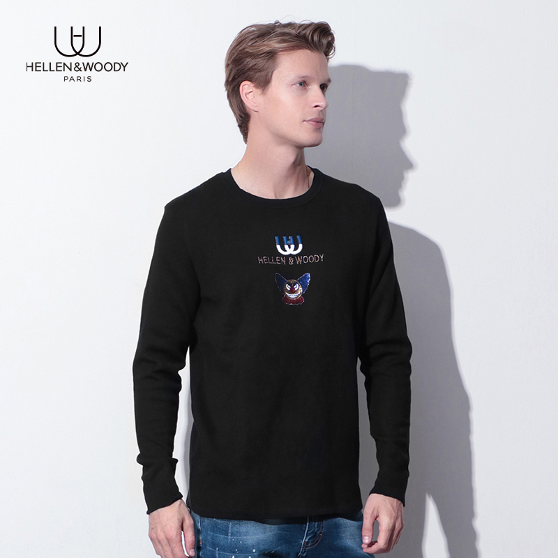 圆领羊毛针织衫 奢侈品小丑刺绣亮片毛衣打底修身 男 秋冬新款 HW男装