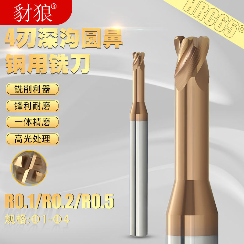 62度钨钢合金微小径圆鼻深沟长颈4刃避空铣刀加长1.5 3mm牛鼻刀