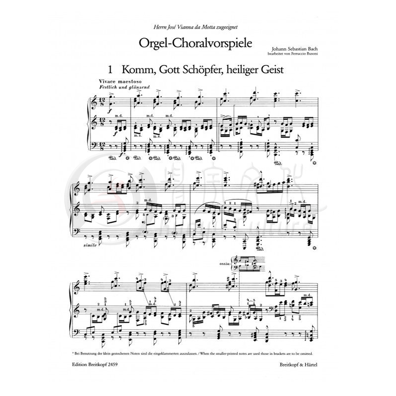 钢琴独奏 Choral 众赞前奏曲 布索尼版 Preludes 德国大熊原版 全套共一至二卷 Piano 巴赫 乐谱书 Volume Bach