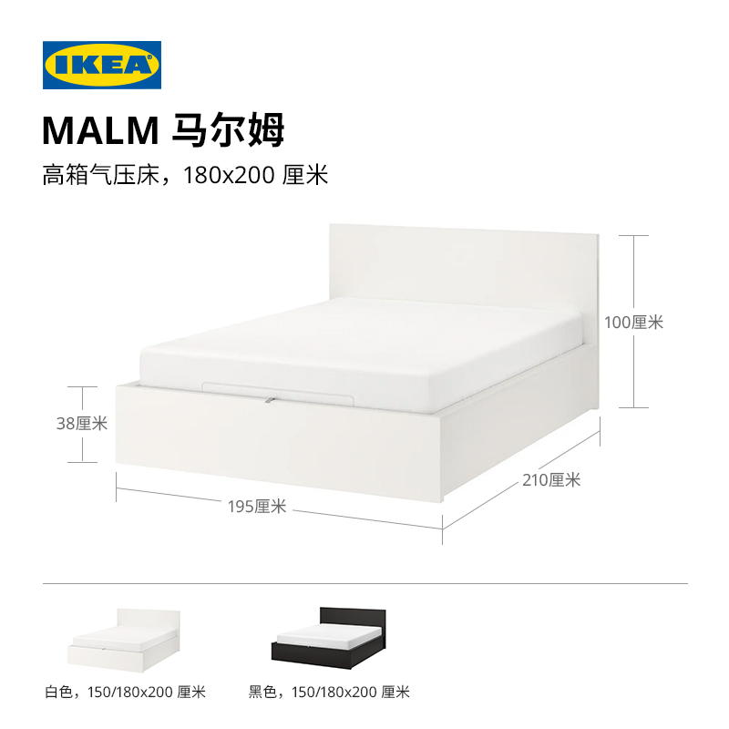 IKEA宜家MALM马尔姆多功能高箱床储物床卧室双人床 双11预售
