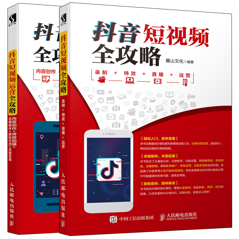 抖音短视频运营全攻略 内容创作 流量变现 录制直播 2册抖音运营管理书 吸粉引流 运营 后期制作 抖音短视频全攻略 拍摄
