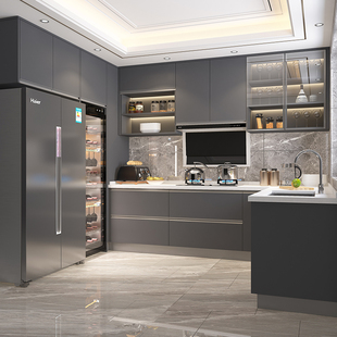 官方金牌厨柜厨房整体橱柜定制家用石英石台面灶台柜橱柜一体