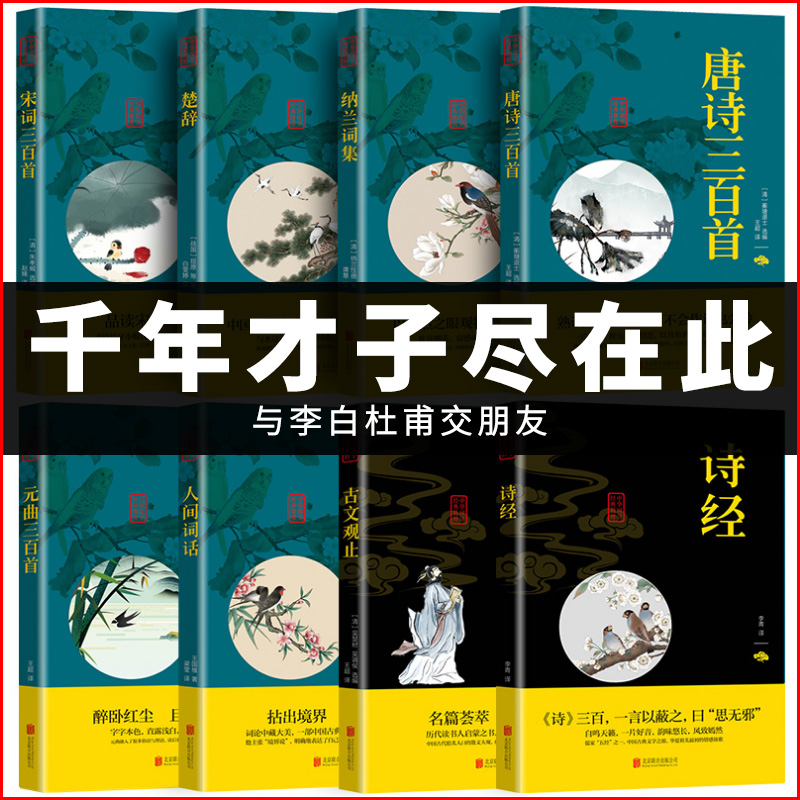 八册中国古典诗词唐诗宋词元 曲三百首诗经纳兰词楚辞人间词话古代文化学观止原注释译文解析王国维李白清照煜辛弃疾诗词集中小学生