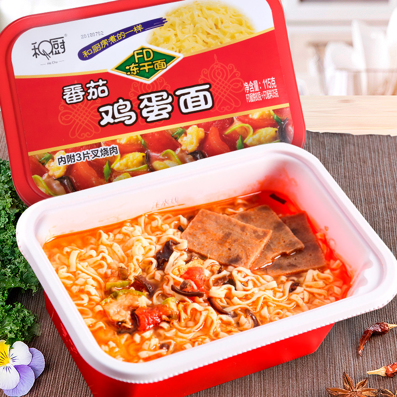 和厨番茄鸡蛋面115g冻干面非油炸方便面速食面泡面盒装 面速食速食