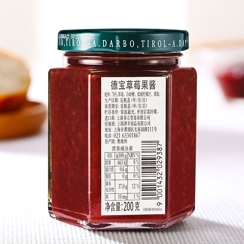 原装 进口德宝草莓果酱200g早餐涂抹面包蛋糕烘焙蓝莓酸樱桃大果粒
