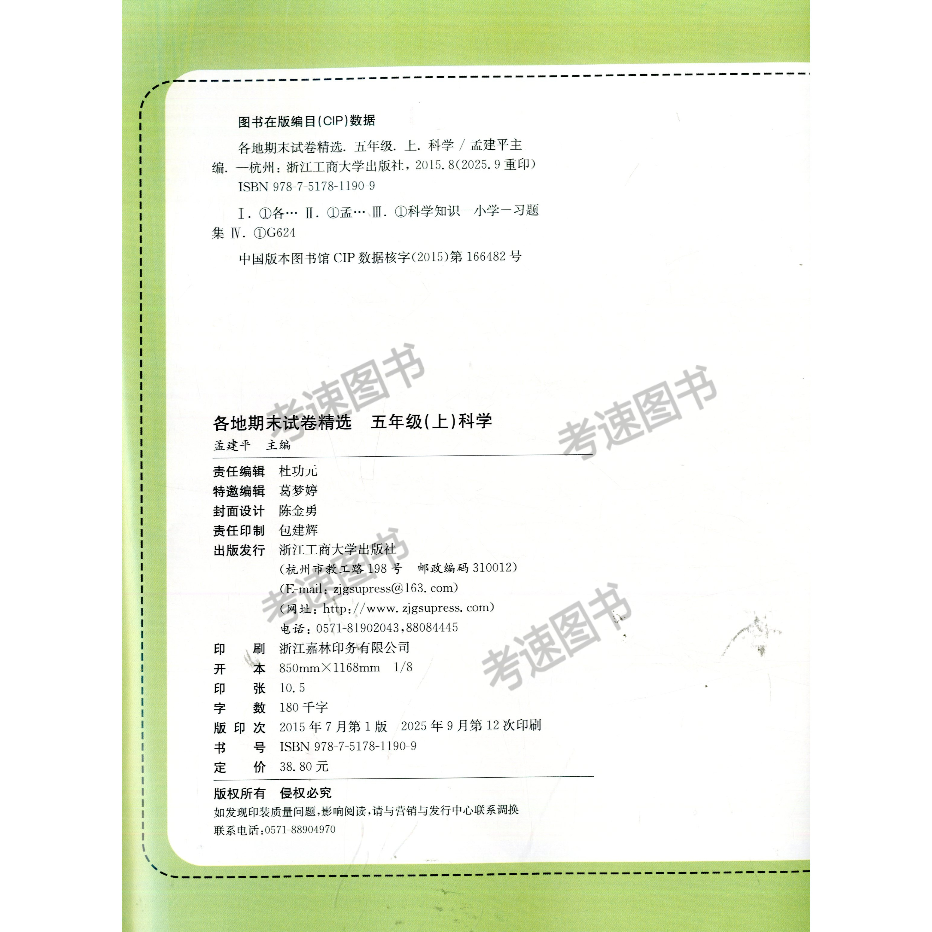 2025秋新版 小学生5年级各地全真期末统考试卷期末专项复习知识清单考试卷同步练习册 孟建平各地期末试卷精选五年级上册科学教科版