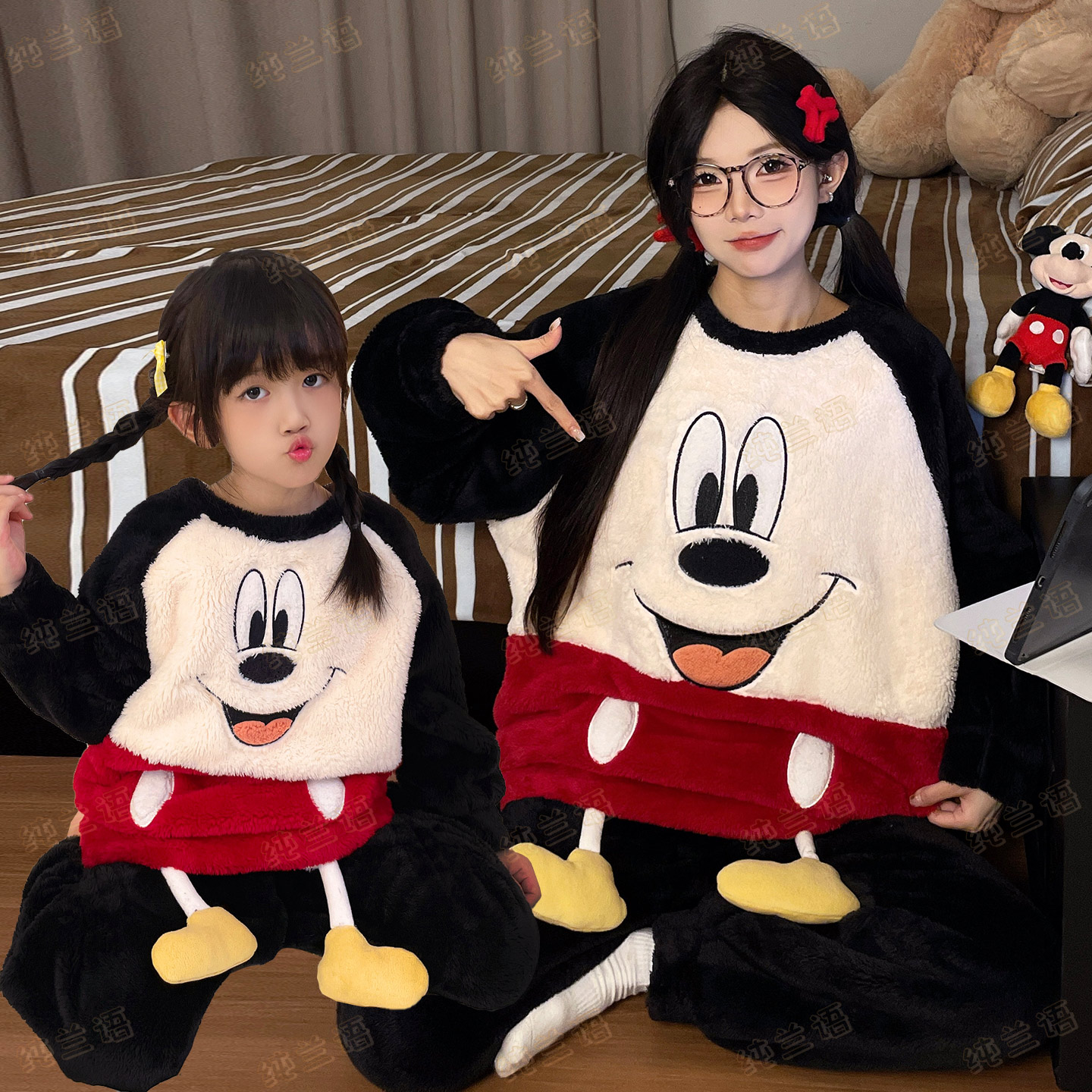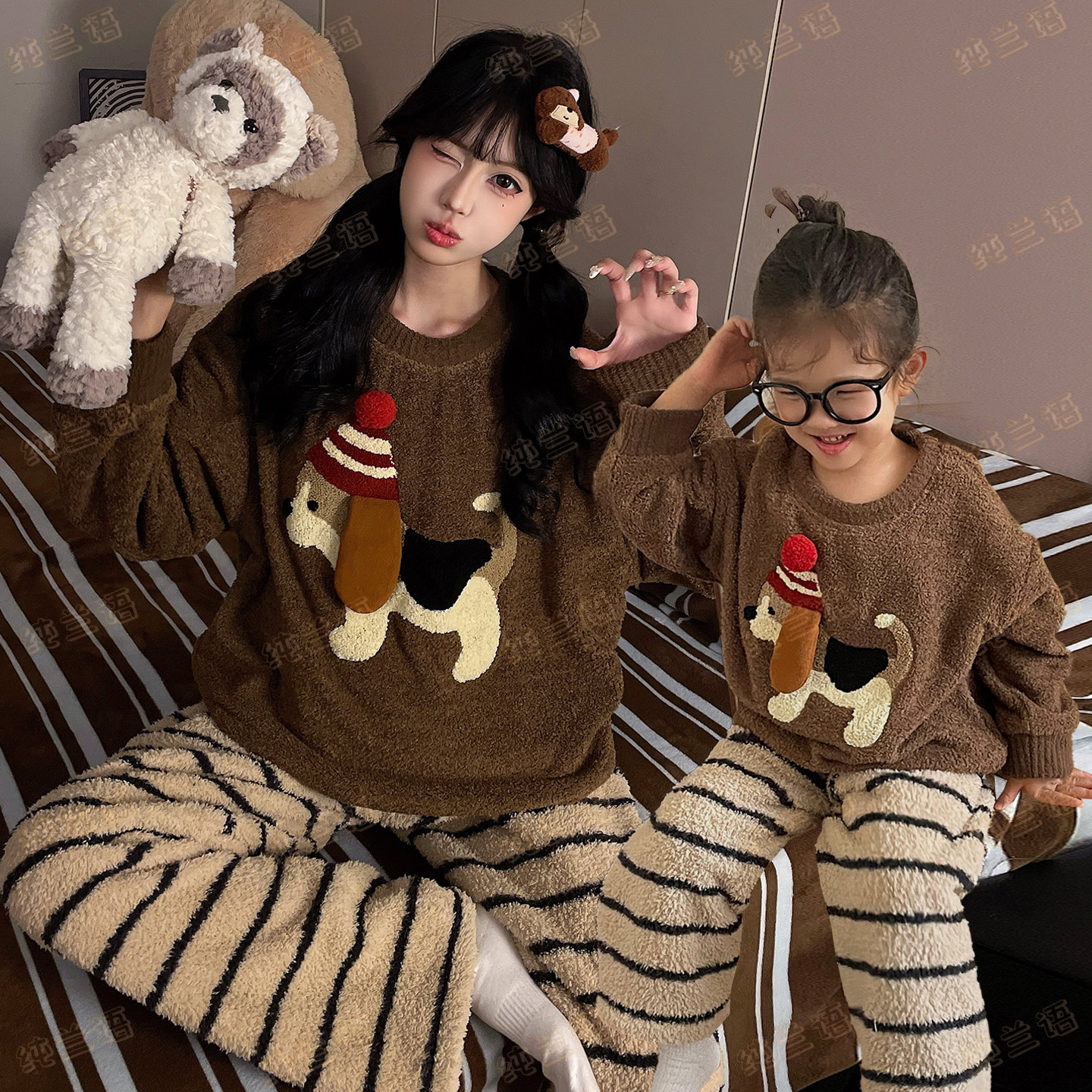 亲子可爱家居服 秋冬季 腊肠狗睡衣母女冬款 加厚软糯半边绒2025新款